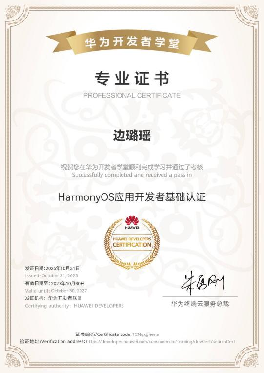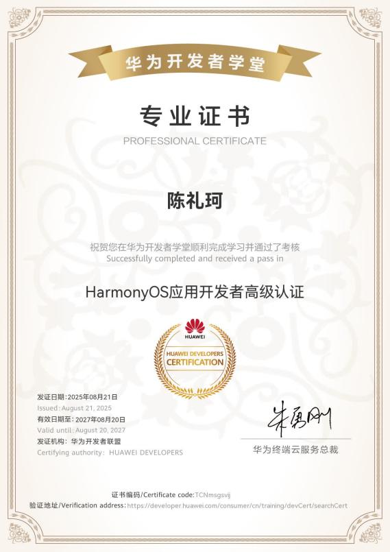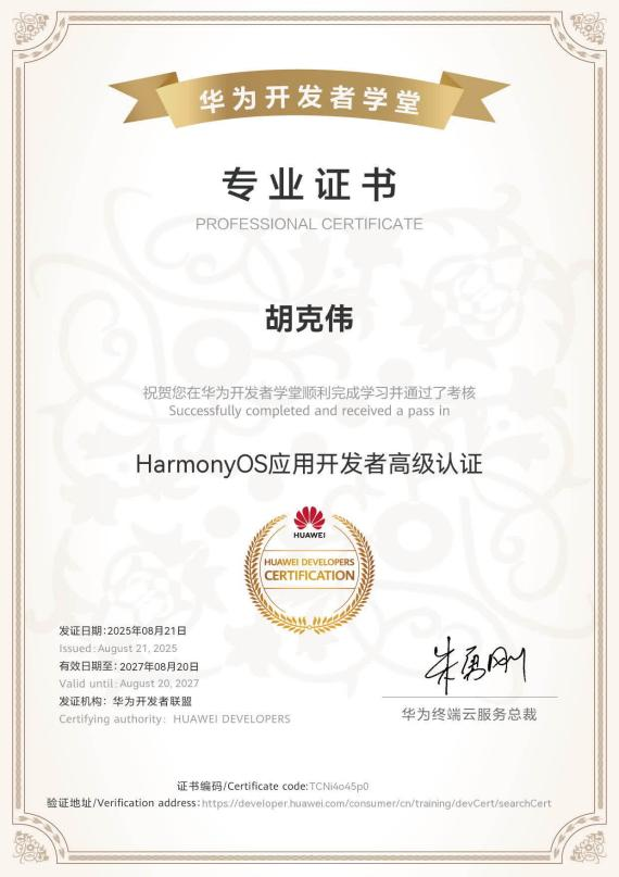 部分计算机学子考取的鸿蒙应用开发者证书